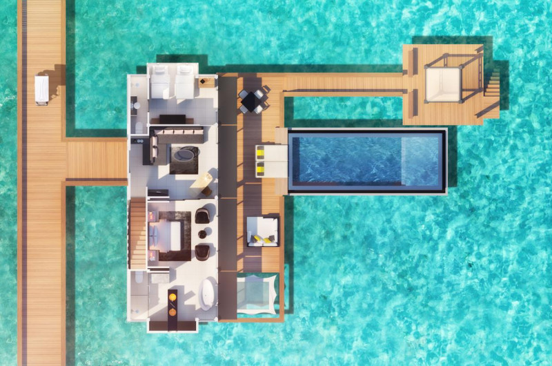 Unele vile situate pe plajă au piscină cu hidromasaj sau terasă privată cu grădină și piscină. Toate vilele situate pe plajă includ facilități moderne, precum TV, facilități pentru prepararea de cafea și ceai, fierbător electric, dormitor, halate de baie, duș cu efect de ploaie in aer liber și papuci pentru exterior. Vilele situate pe apă sunt amplasate mai departe de insulă, langă recife. Fiecare vilă pe apă este spațioasă, avand 2 niveluri și piscină infinită. Toate vilele oferă acces direct la plajă și la ocean. WiFi este disponibil pe intreaga insulă.