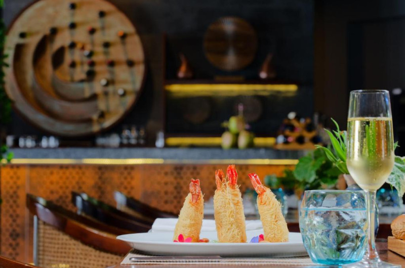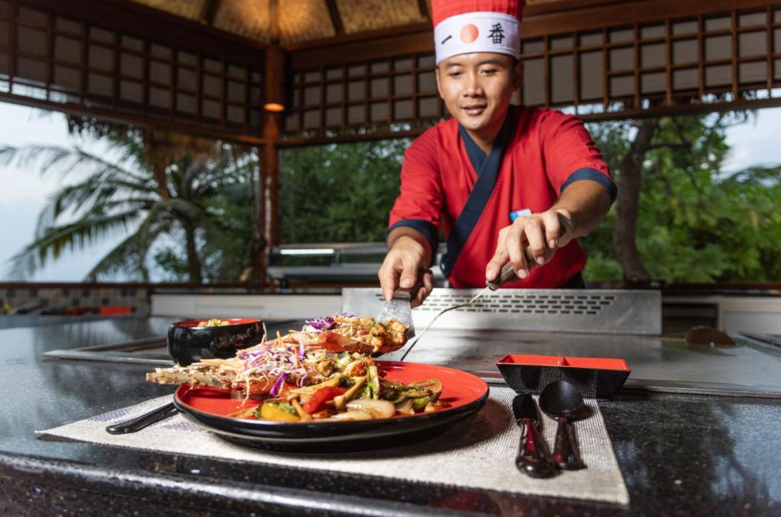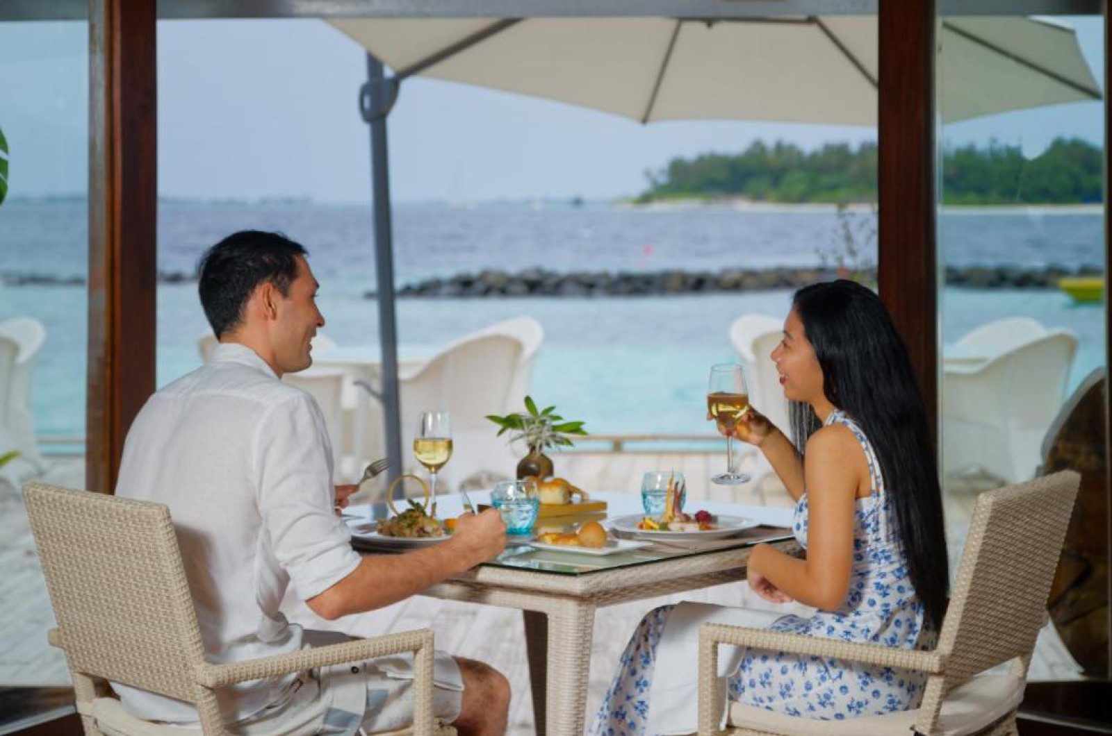 Barul Grill servește fripturi suculente, aripioare de pui crocante și delicatese gustoase din pește, in timp ce Sea Breeze Café oferă preparate occidentale și internaționale la malul mării. O gamă largă de preparate tip bufet poate fi savurată la Restaurantul Gallery. Huvan și Sand Bar oferă un cadru tropical incantător pentru a savura cocktailuri și divertisment live. Opțiuni chinezești sunt disponibile pentru micul dejun. Restaurantul Umi Yaki servește mancare japoneză Teppanyaki.