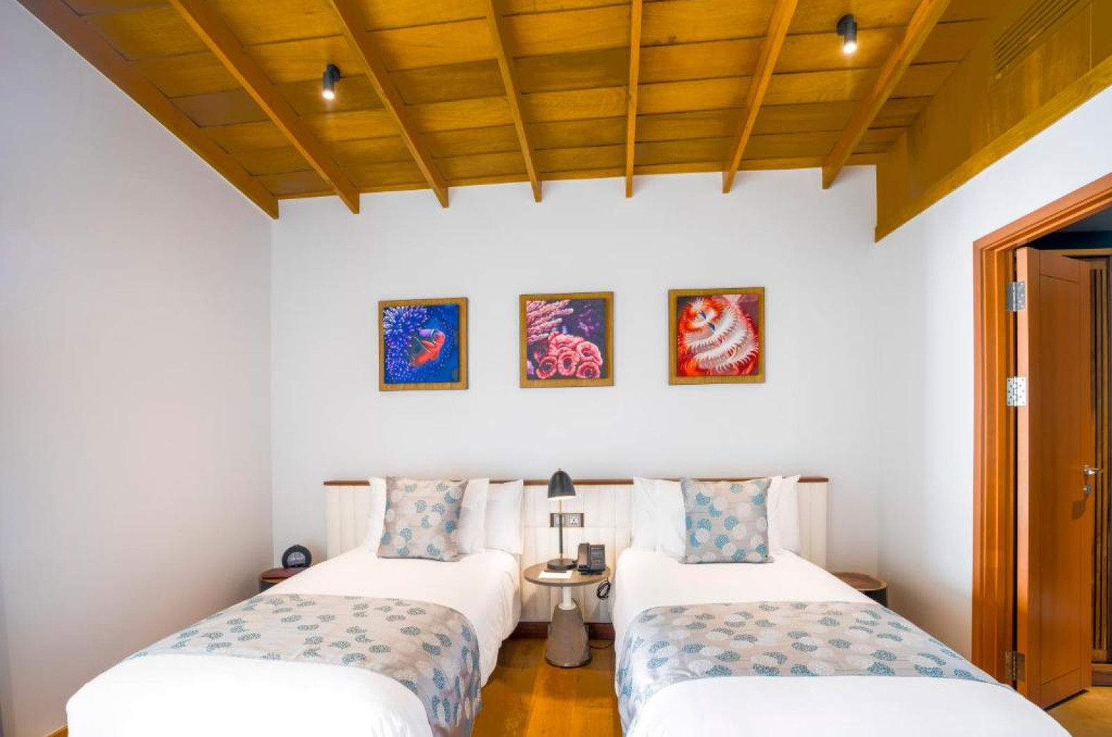 Acest complex pune la dispoziția oaspeților camere cu aer condiționat, birou, cafetieră, un minibar, cutie de valori, televizor cu ecran plat, terasă și baie proprie cu bideu. Baia proprie oferă un duș, articole de toaletă gratuite și un uscător de păr. La Emerald Faarufushi Resort & Spa - Deluxe All Inclusive, toate camerele sunt echipate cu lenjerie de pat și prosoape.