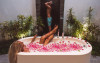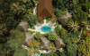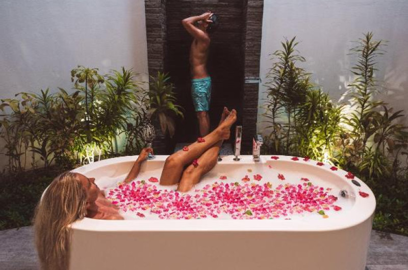 feature open-air bathrooms with indoor and outdoor showers, double vanity, daybeds, private verandas