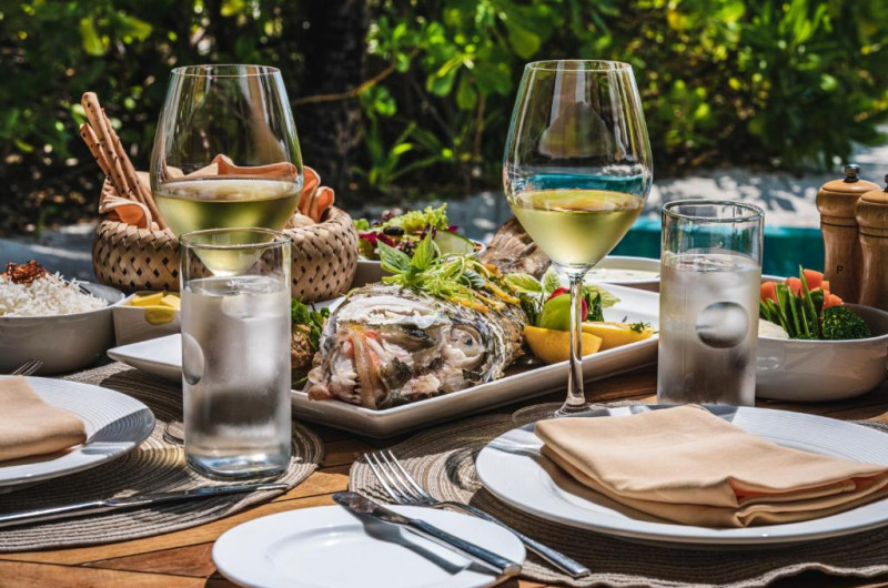 to the privacy of Villa 24 hours. A range of private dining experiences such as Handhu platform dining,