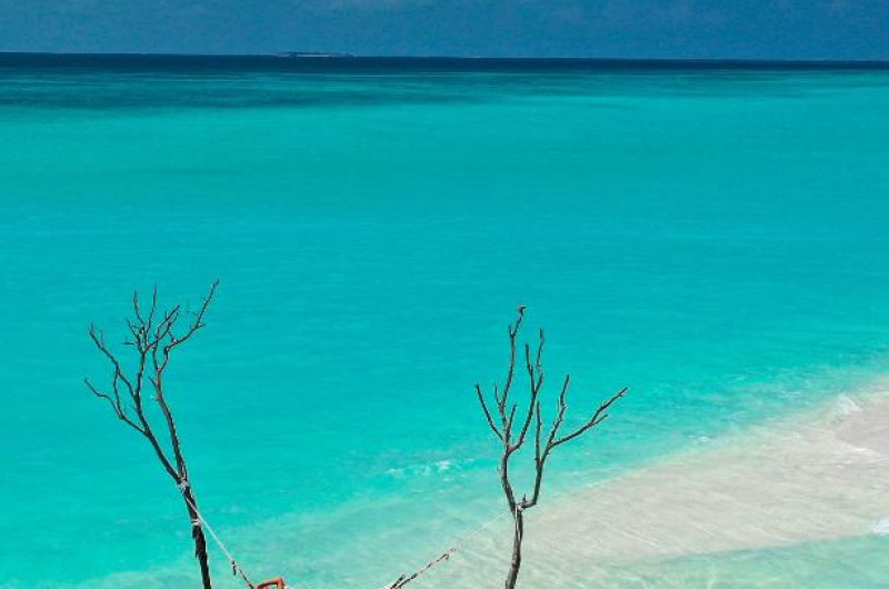 own private sandbank – only a few meters away in a crystal-clear turquoise lagoon.