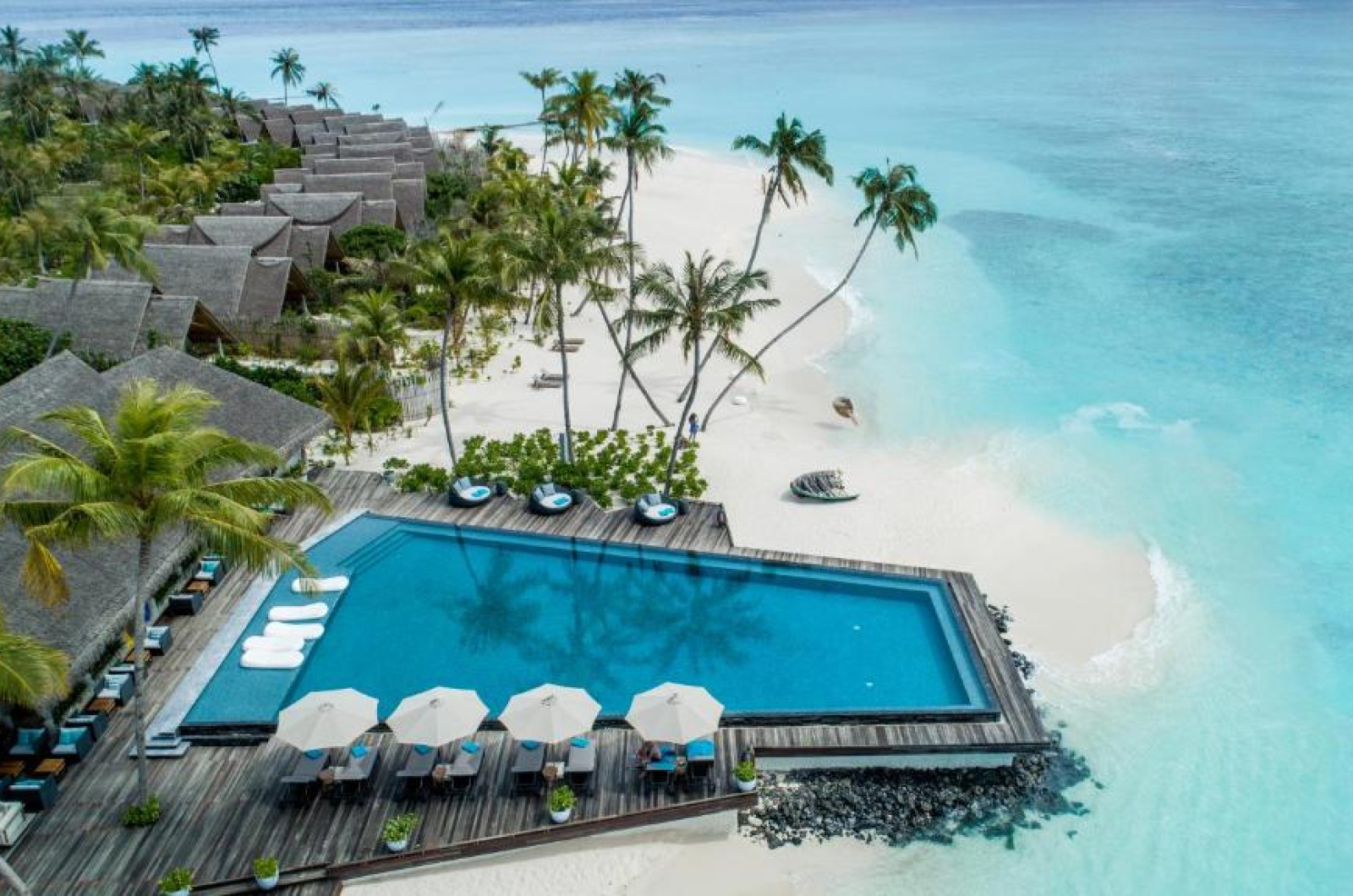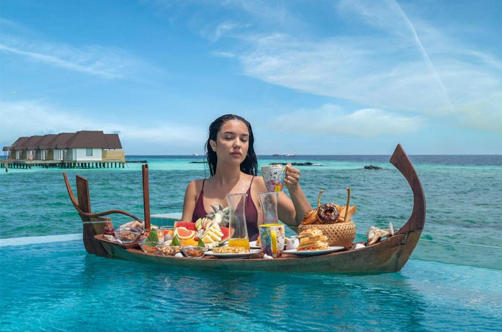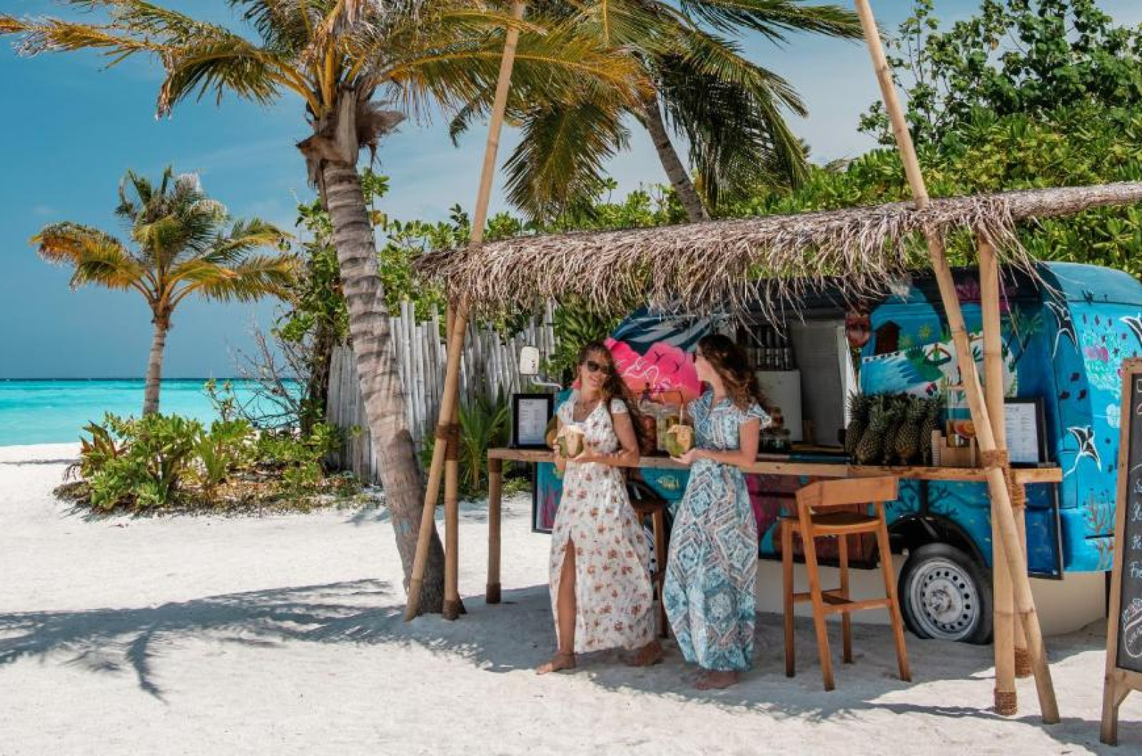 Cocktail-urile originale și pachetele de detoxifiere sunt completate de cea mai frumoasă vedere la apusul soarelui de pe insulă, iar la barul Fanihandhi, oaspeții se pot relaxa langă piscină. Oaspeții se pot bucura de o gamă largă de mancăruri internaționale și de gustări servite direct in intimitatea vilei, acest serviciu fiind disponibil nonstop. La cerere, oaspeții pot beneficia și de experiențe culinare private, cum ar fi mese pe debarcaderul Handhu, mic dejun pe o tavă plutitoare și mese la piscină.