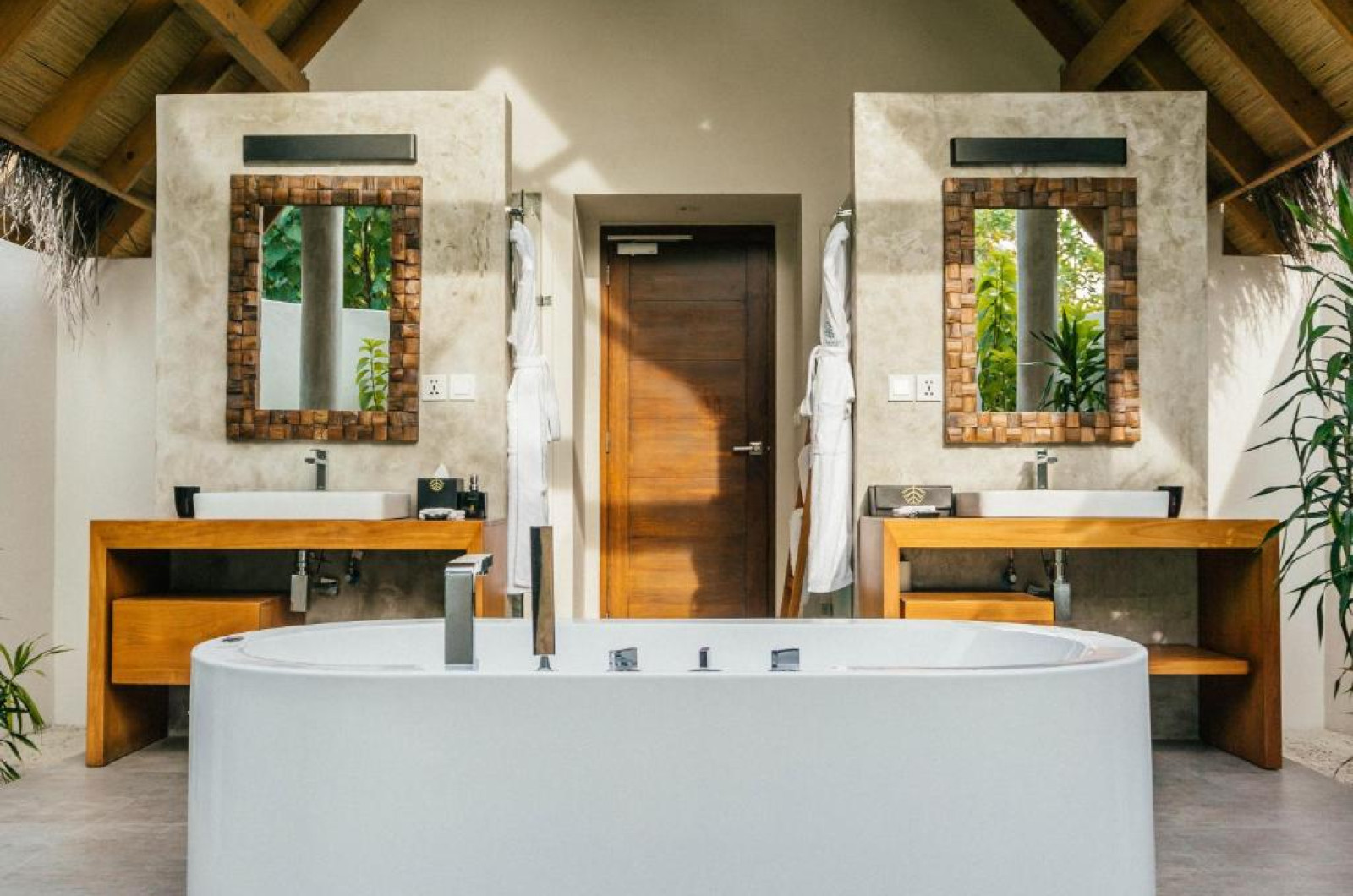 Combinand designul tipic maldivian cu estetică modernă, Fushifaru Maldives with 50 percent off on sea plane roundtrip 04 nights & above pune la dispoziție 63 de vile pe plajă și deasupra apei, care oferă o atmosferă de intimitate, dar și cu amenajări și facilități luxoase. Fiecare vilă spectaculoasă are baie in aer liber cu duș interior și in aer liber, chiuvetă dublă, paturi de zi, verandă privată cu zonă de luat masa și vedere superbă la laguna cristalină din jur, iar unele vile au piscină de relaxare.