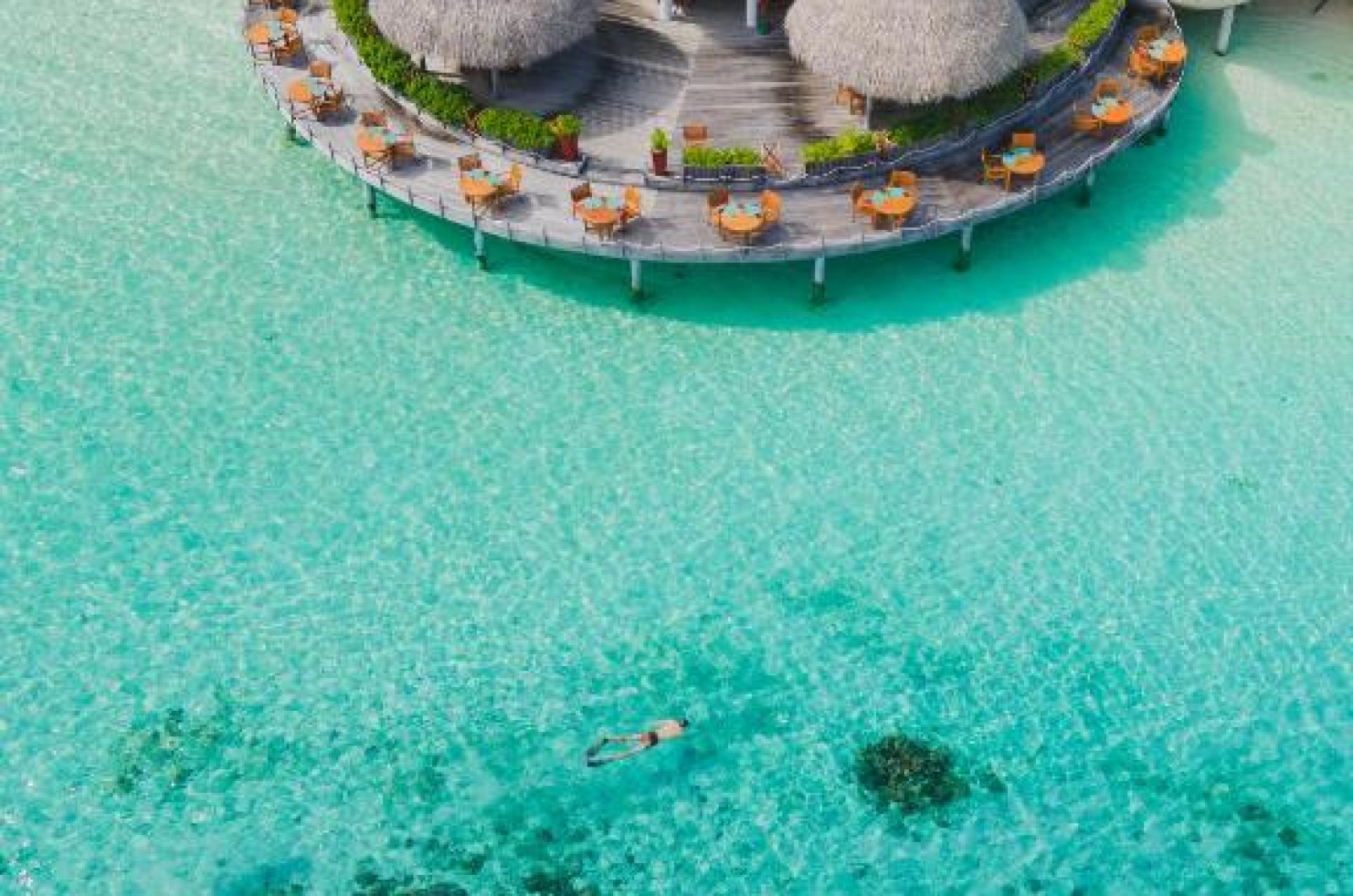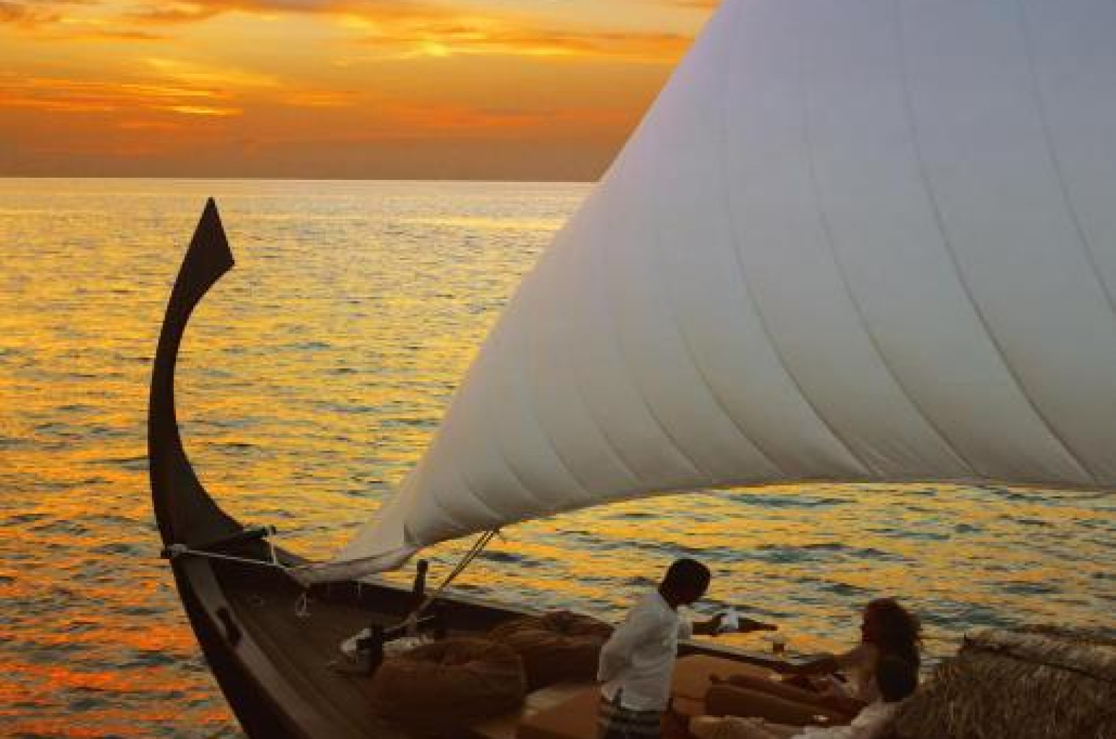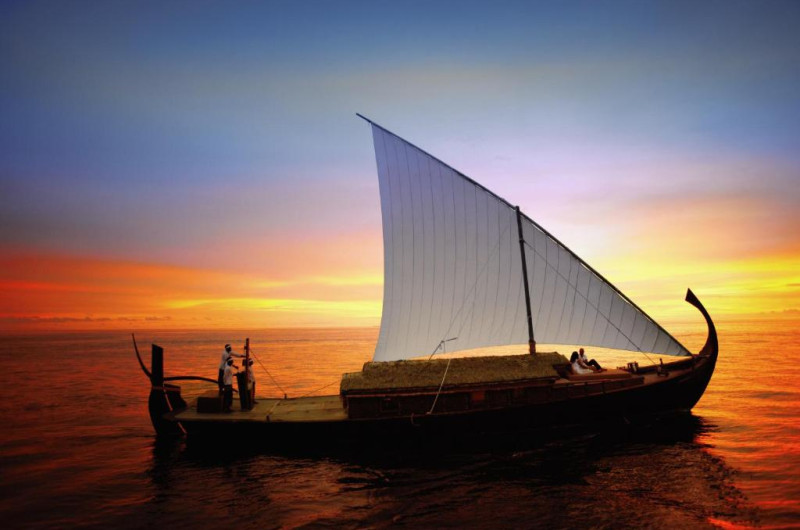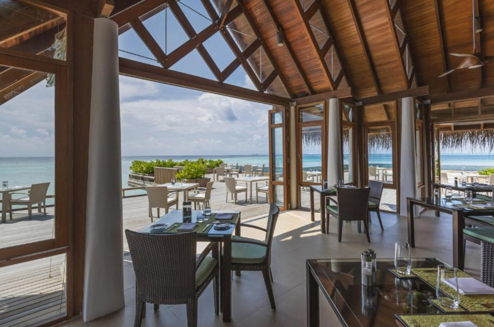 Cele 3 restaurante servesc mese rafinate, fructe de mare si delicatese din Asia, iar oaspetii se pot bucura de mese private in vilă, pe un banc de nisip sau pe o punte deasupra lagunei. Barul Sails servește băuturi pe toată durata zilei, sub palmieri. Seara, oaspetii pot savura cocktailuri admirand marea și au la dispoziție un lounge de trabucuri.