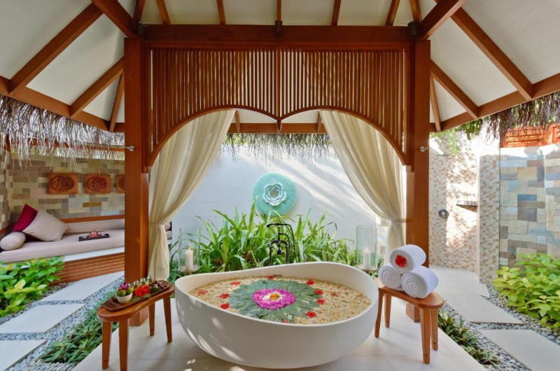 Toate vilele sunt private si includ aparat de cafea espresso, minibar și vin. Printre facilitățile de divertisment din vilă se numără TV cu ecran plat și stație de andocare pentru iPod. Oaspeții se pot răsfăța la spa sau pot face o baie in piscina infinită, situată deasupra apei. In plus, aceștia pot practica sporturi de apă și yoga. Complexul oferă un lounge cu bibliotecă și acces gratuit la internet WiFi in camere.