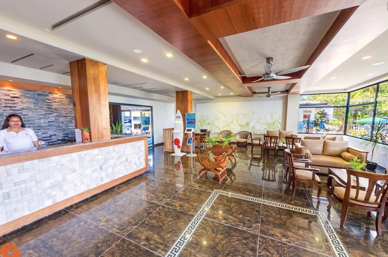 Restaurantul hotelului, situat vizavi de Bikini Beach, serveste preparate din bucătăriile locală si occidentală, cu vedere la laguna albastră.