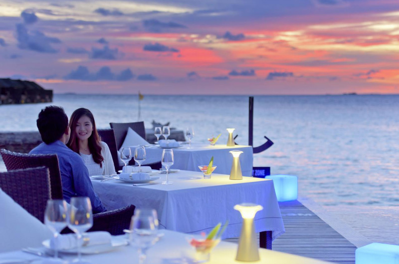 Restaurantul in aer liber Lily Maa are vedere panoramică la lagună si serveste bufete pe tot parcursul zilei, alături de o selectie de 70 de tipuri de vin premium. Restaurantul Tamarind oferă preparate ce combină tradițiile culinare indiană si chineză, iar la The Wave puteți savura homar proaspăt. Este disponibil si un mic dejun chinezesc.