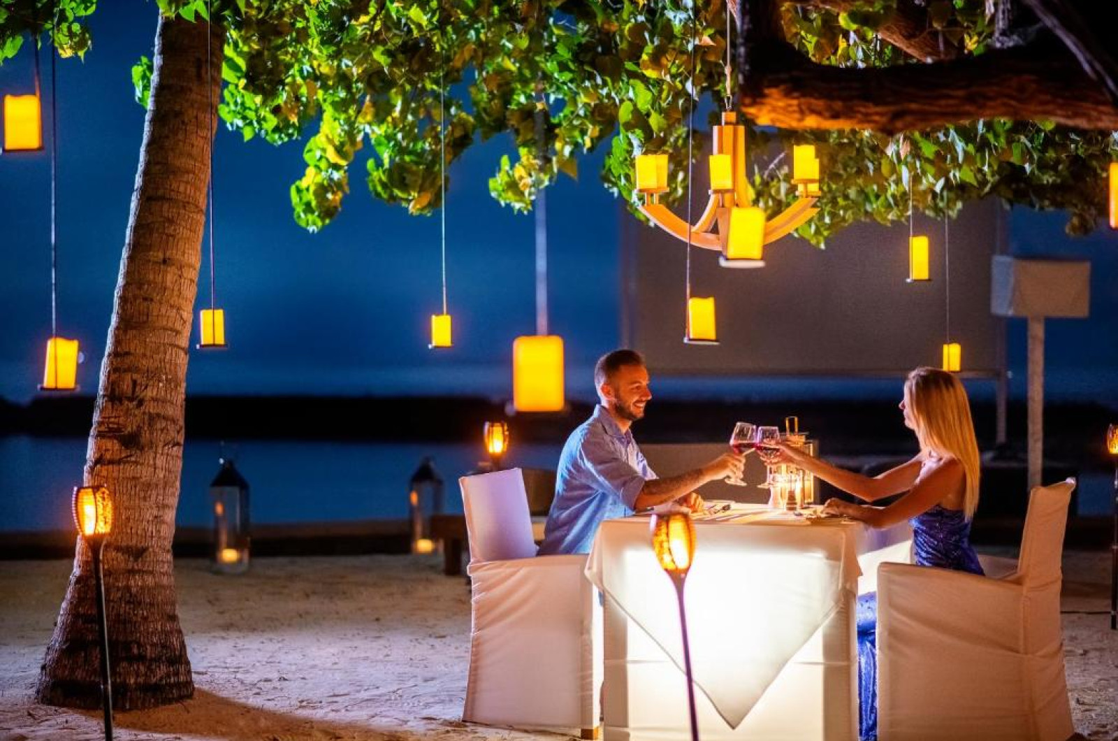 Restaurantul in aer liber Lily Maa are vedere panoramică la lagună si serveste bufete pe tot parcursul zilei, alături de o selectie de 70 de tipuri de vin premium. Restaurantul Tamarind oferă preparate ce combină tradițiile culinare indiană si chineză, iar la The Wave puteți savura homar proaspăt. Este disponibil si un mic dejun chinezesc.