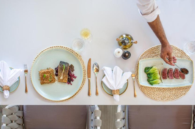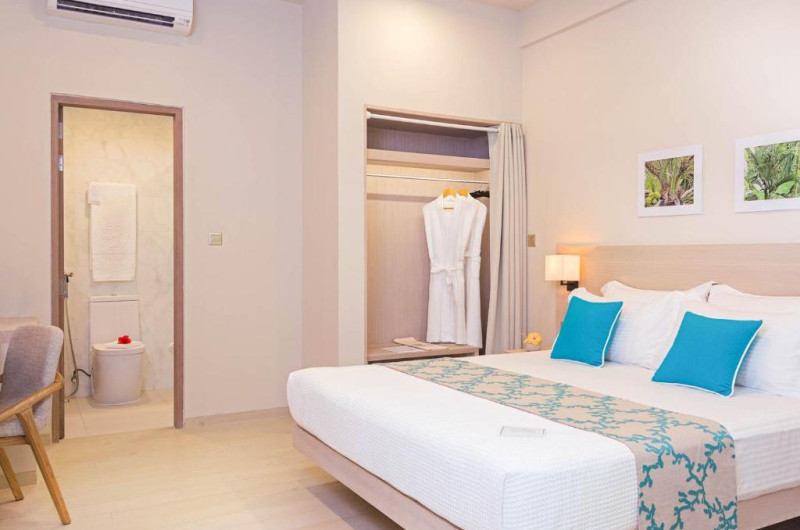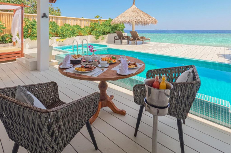 Inspirat de casele tradiționale ale insulelor Maldive și de designul modern opulent, interiorul atent conceput, decorat cu ceramică celadon elegantă și oferind o vedere impresionantă, imbină fiecare aspect pentru a crea un farmec aparte al vilelor Sunrise cu piscină - pe plajă și suitelor Sunset Beach cu piscină.