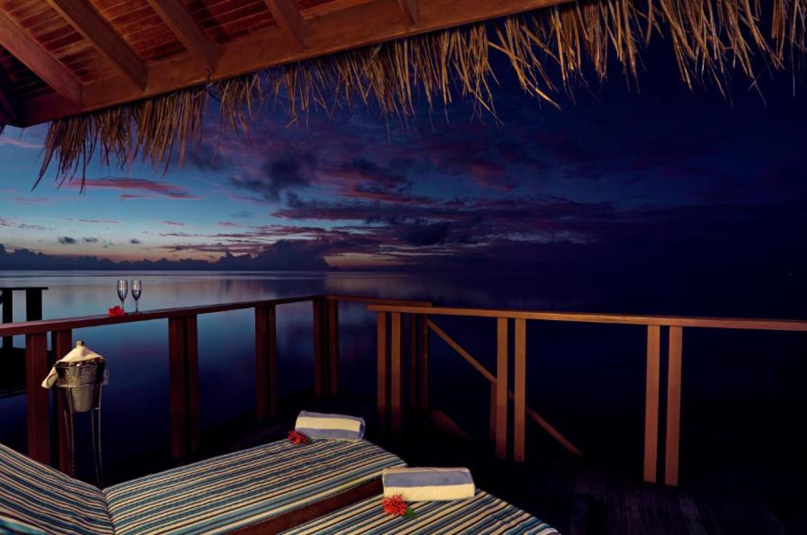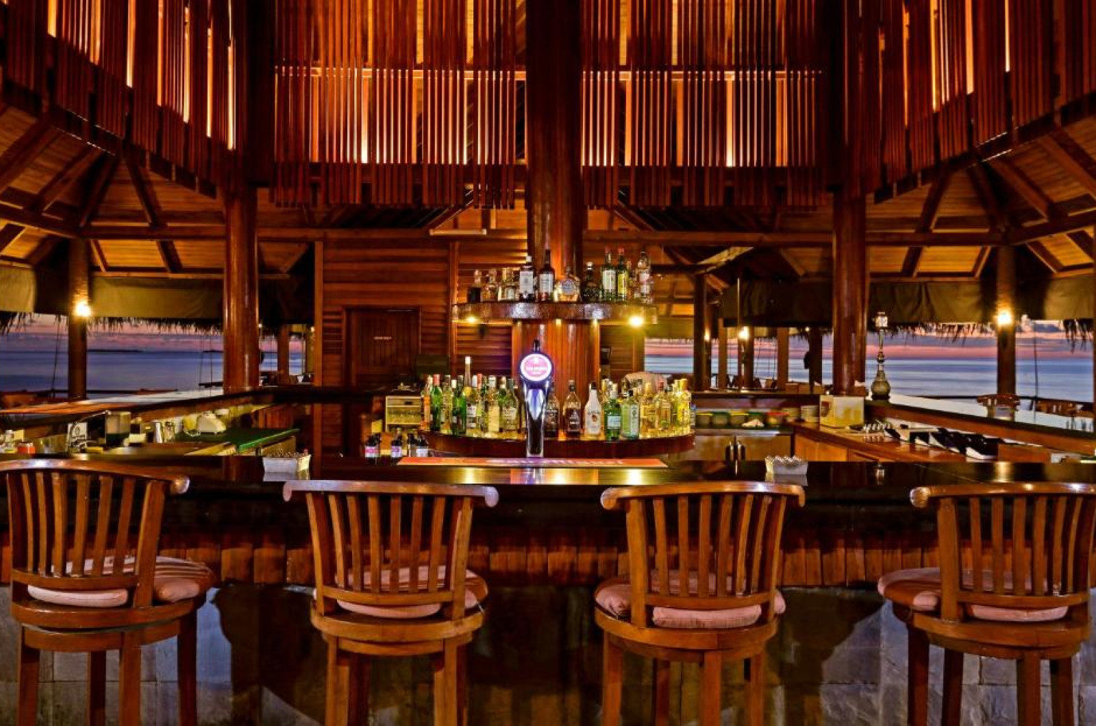 Cu vedere frumoasă la apusul de soare, Alfresco propune diferite băuturi si mancăruri, iar Malafaiy servește bufete cu preparate tartinabile langă piscină. La Barul Vilu, amplasat deasupra lagunei, se pot savura băuturi și gustări ușoare.