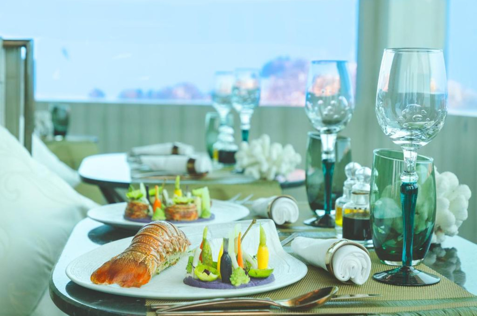 Regimul All inclusive - The INDULGENCE Plan include un serviciu gratuit de transfer de la/la aeroport cu barca de lux cu motor, experiențe culinare rafinate și specializate, băuturi spirtoase premium, bere, vinuri și cocktailuri, utilizarea echipamentelor pentru snorkeling și sporturi nautice nemotorizate, experiență spa sau scufundări, precum și minibar aprovizionat zilnic.