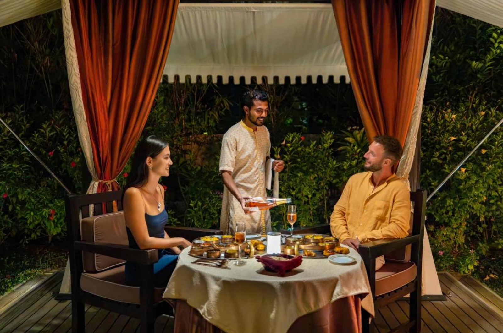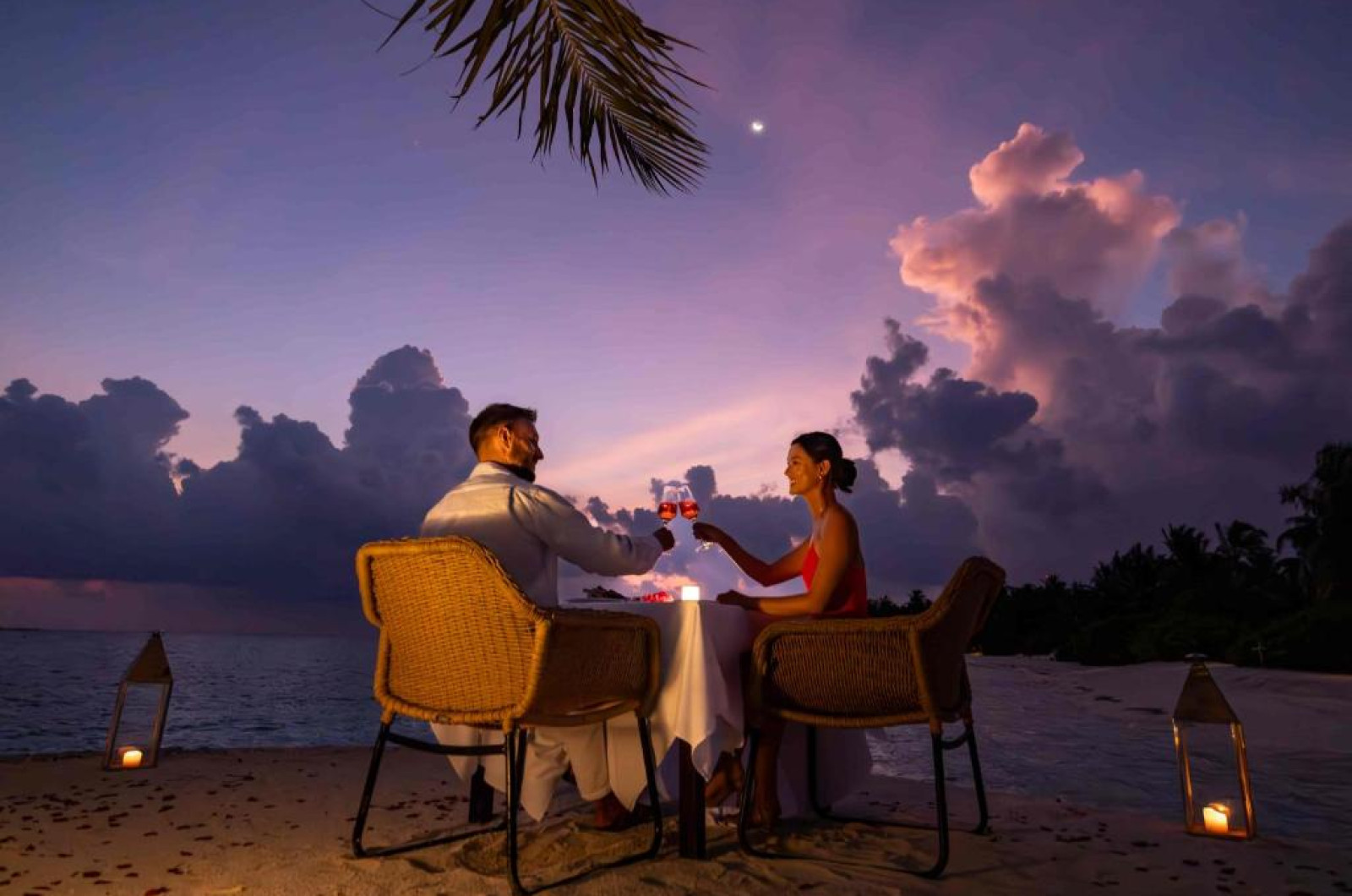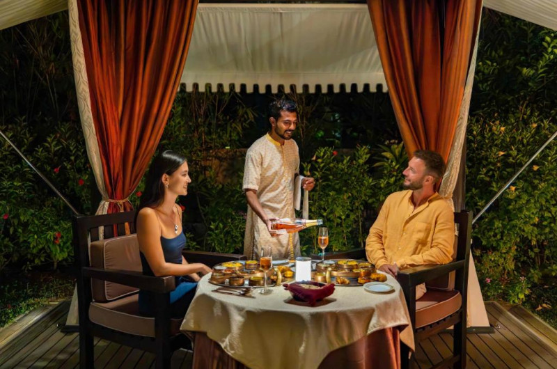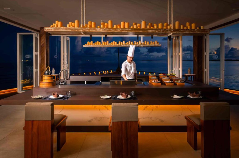 Oaspeții pot lua masa in splendoarea Maldivelor, in timp ce admiră vederea superbă la Oceanul Indian. Complexul oferă o varietate de experiențe culinare și bucătării, inclusiv preparate indiene tradiționale, mancăruri revigorante din Orientul Mijlociu servite langă plajă și preparate gourmet din fructe de mare, insoțite de șampanie și vinuri excelente.