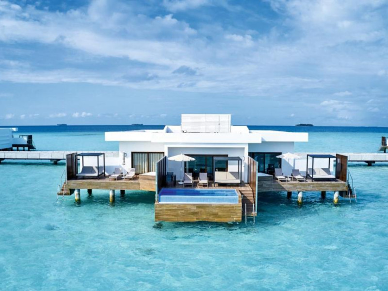 Riu Palace Maldivas- All Inclusive din Atolul Dhaalu are un restaurant, centru de fitness, o piscină in aer liber și un bar. Acest complex de 5 stele are grădină și camere cu aer condiționat, WiFi gratuit și baie privată. Proprietatea are recepție cu program non-stop și oferă room-service.