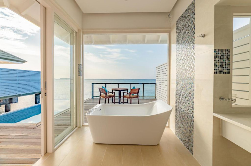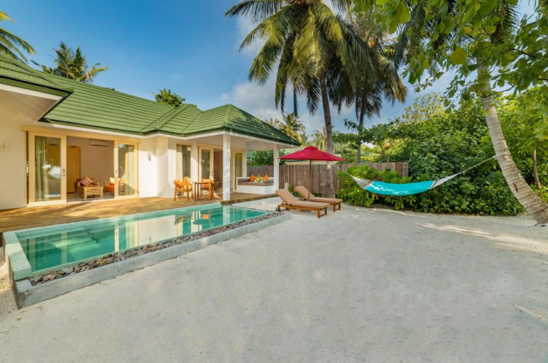 Resortul oferă multiple opțiuni de cazare, de la ville pe plajă pană la bungalowuri spectaculoase construite deasupra apei, toate decorate in stil contemporan maldivian. Oaspeții se pot bucura de facilități premium precum piscine infinity, centru spa de lux, sporturi acvatice și centru de scufundări profesionist.