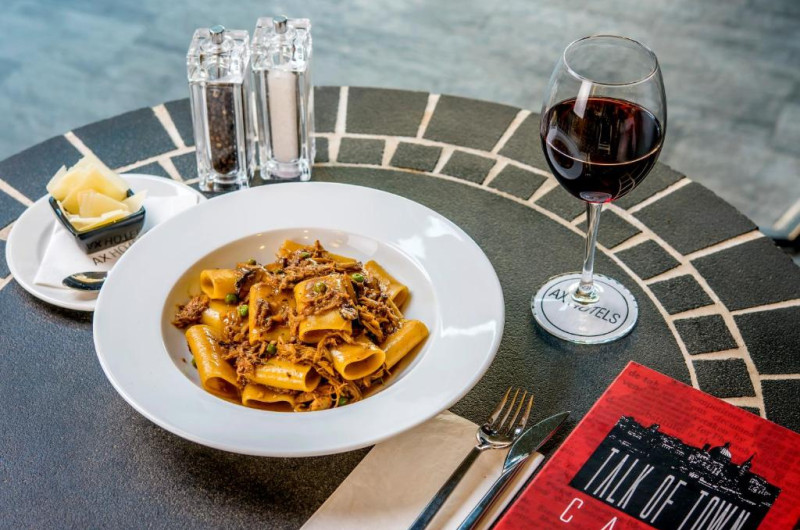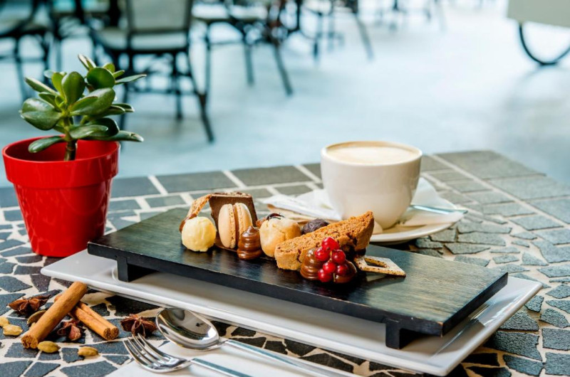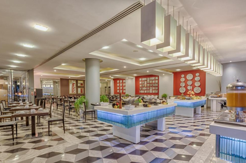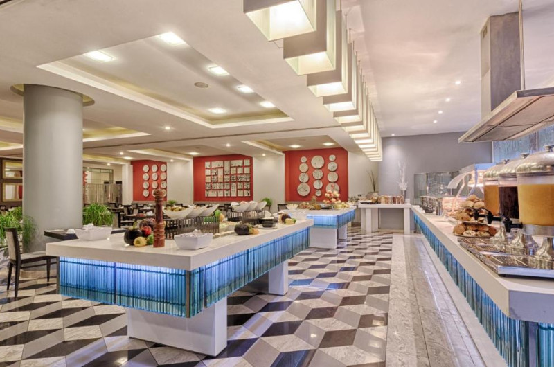 The Palace are 2 restaurante: unul la ultimul etaj, specializat in mancăruri orientale, iar celălalt specializat in preparate mediteraneene clasice.