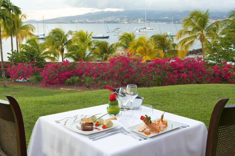 Oaspeții pot lua masa la unul dintre cele 2 restaurante de proprietate: Le Chateaubriand, cu vedere panoramică la golful Fort de France, și restaurantul La Siréne, aflat pe malul mării. Hotelul Bakoua Martinique găzduiește renumitul Coco Bar, care oferă gustări și vedere la Bakoua, și barul Le Gommier, care servește cocktailuri originale.