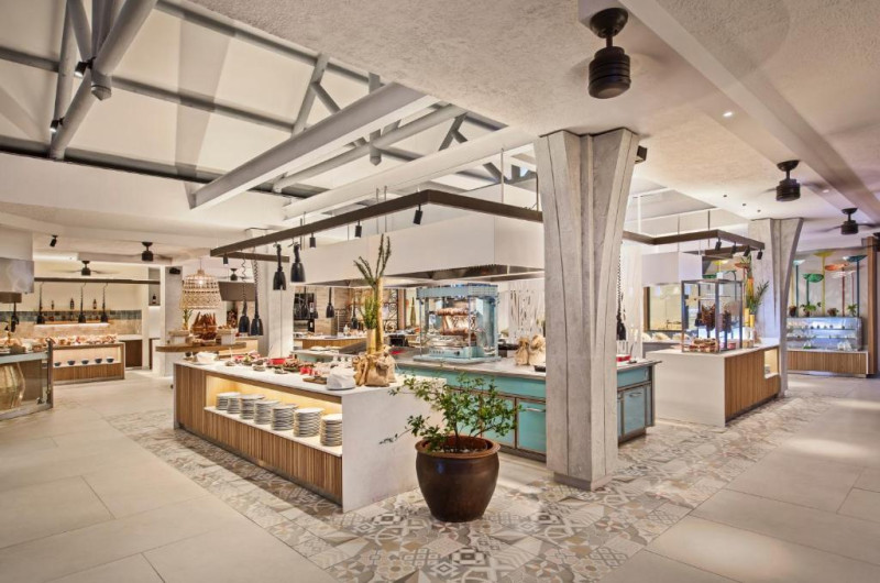 Complexul asigură o varietate de restaurante internationale à la carte si tematice tip bufet, cu vedere la piscină, la plajă sau la terenul de golf. Oaspetii pot savura băuturi la cocktail barul cu vedere la piscină.