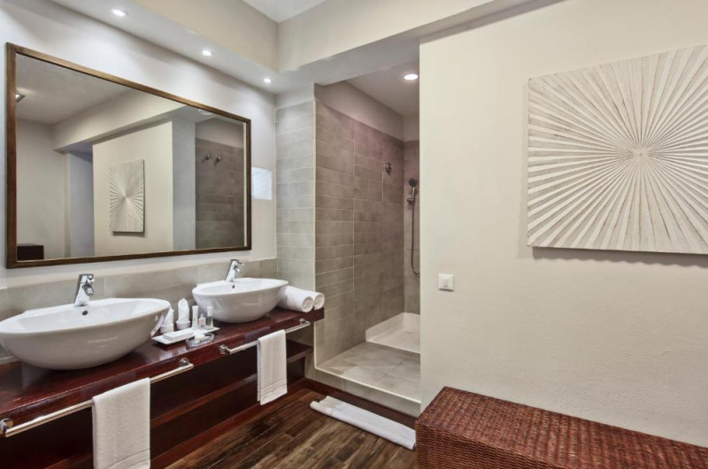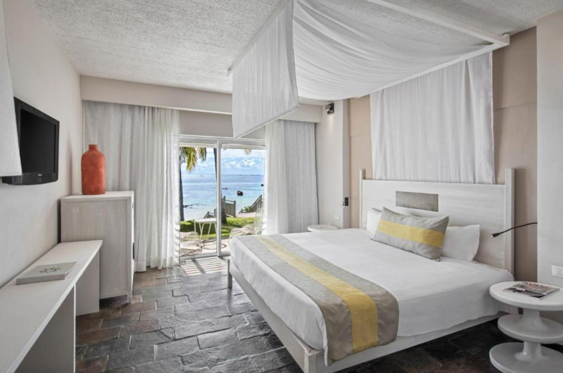 Combinand mobilierul neutru cu nuantele luminoase, toate camerele au vedere la mare si se bucură de un balcon privat sau de un patio cu grădină. Sunt dotate cu aer conditionat, TV cu ecran plat, telefon si facilităti pentru prepararea de ceai si cafea. Băile private au dus, iar suitele junior oferă o cadă spa.