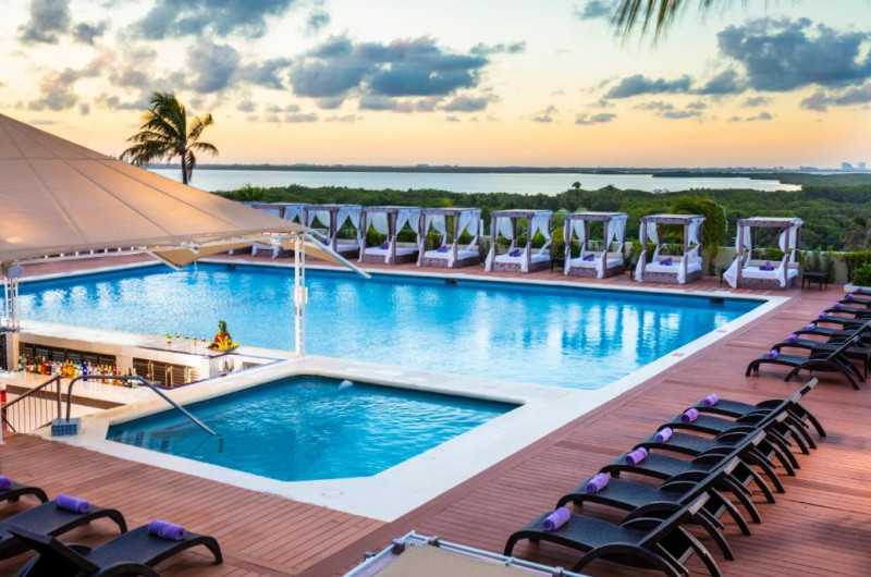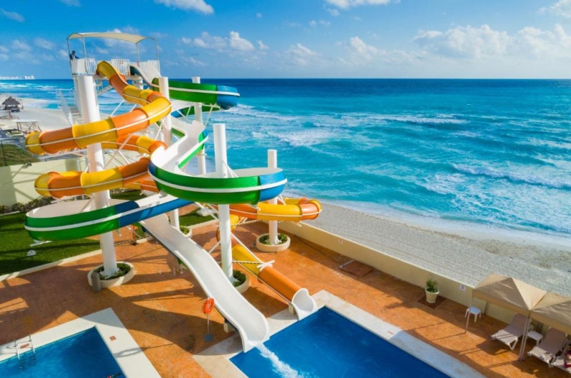 Facilități hotel: dispune de un parc acvatic cu 8 topogane, 3 piscine in aer liber, bar la piscină, sală de fitness, restaurante, internet WIFI, miniclub pentru copii, centru spa, sală fitness, dico.