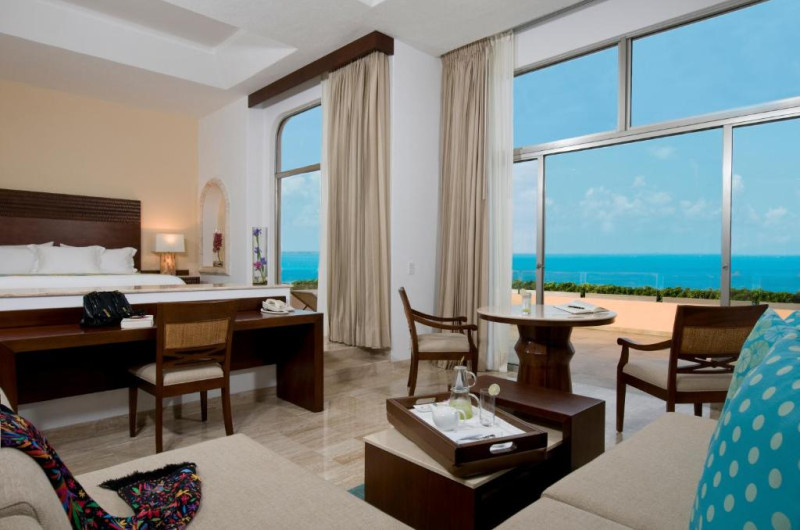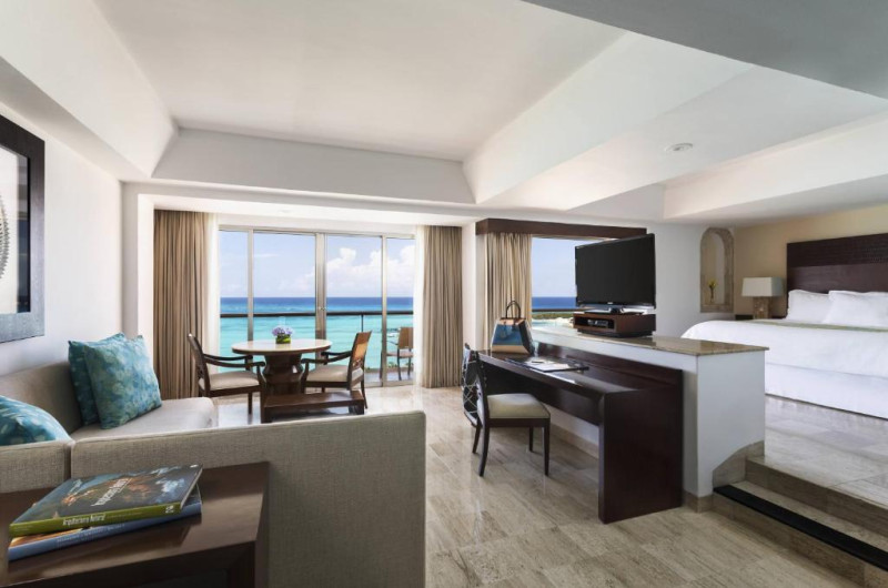 Suitele de la Grand Fiesta Americana Coral Beach Cancun - All Inclusive au vedere directă sau parțială la ocean. Toate au o zonă de relaxare și balcon privat. De asemenea, pentru ca oaspeții să se bucure de cat mai mult confort, camerele includ un minibar și seif.