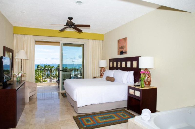 Camerele de la Villa del Palmar Cancun au decor elegant cu pardoseală cu gresie. Toate camerele au chicinetă cu un cuptor cu microunde și baie privată.