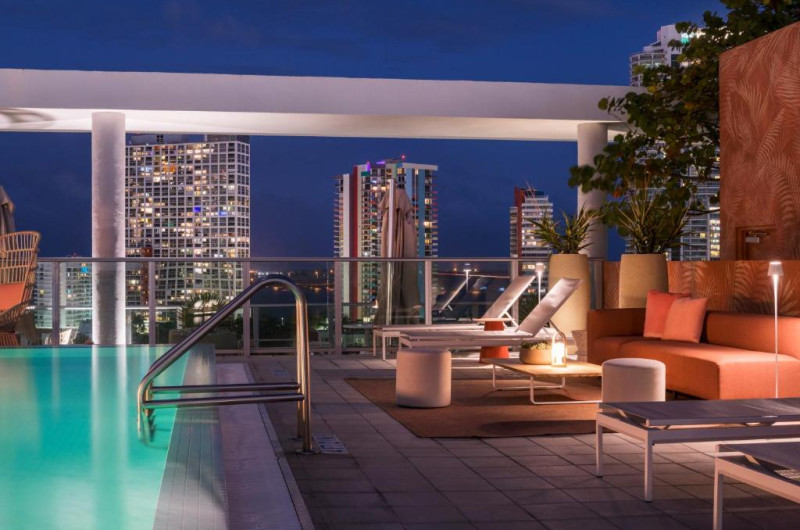 Acest hotel din Brickell are 7 săli de ședințe, un bar și un centru de afaceri.