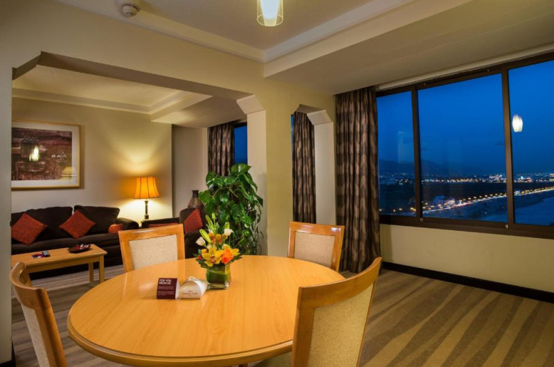 Situat pe varful unei stanci in centrul orașului, Crowne Plaza Muscat oferă vederi panoramice uimitoare la oraș și la mare. Relaxați-vă la piscina infinită cu două etaje sau la plaja privată naturală, inconjurată de apele strălucitoare, in timp ce soarele se scufundă in Marea Golfului.