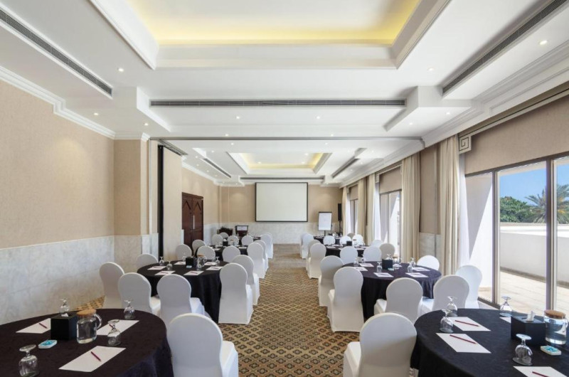 Hotelul oferă mai multe opțiuni de luat masa premiate și se află la cațiva pași de celebra promenadă de pe malul mării, care se intinde spre atracțiile locale, inclusiv Parcul Natural Qurum și Opera Regală.