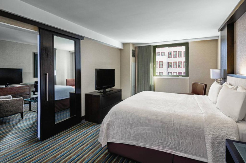Camerele moderne ale hotelului Courtyard New York Manhattan/Times Square au iPod docking station și TV cu ecran plat cu canale prin cablu și HBO. De asemenea, există aparat de ceai/cafea, birou și seif.