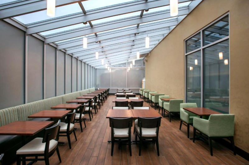 Gypsy Rose Bistro din incintă servește preparate din bucătăria tradițională americană pentru toate mesele și oferă un bar cu servicii complete și room service. Recepția și centrul de afaceri sunt disponibile 24 de ore pe zi.