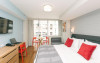 Unele studiouri și apartamente au bucătărie. Toate camerele sunt prevăzute cu baie privată, uscător de păr și articole de toaletă gratuite. De asemenea, sunt incluse TV și aer condiționat. De asemenea, sunt oferite camere pentru persoane cu mobilitate redusă.