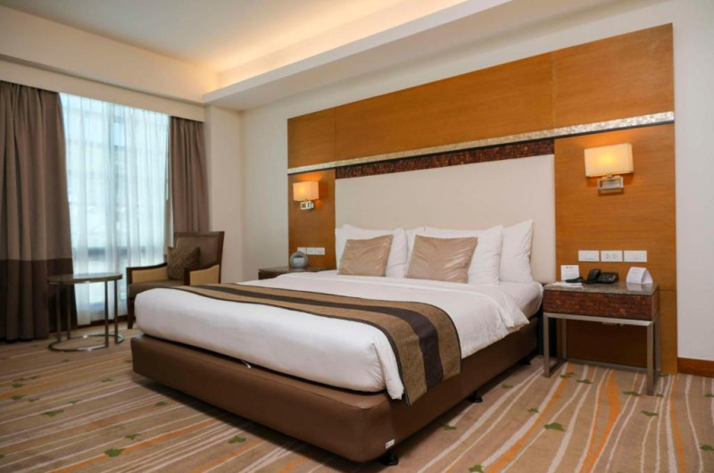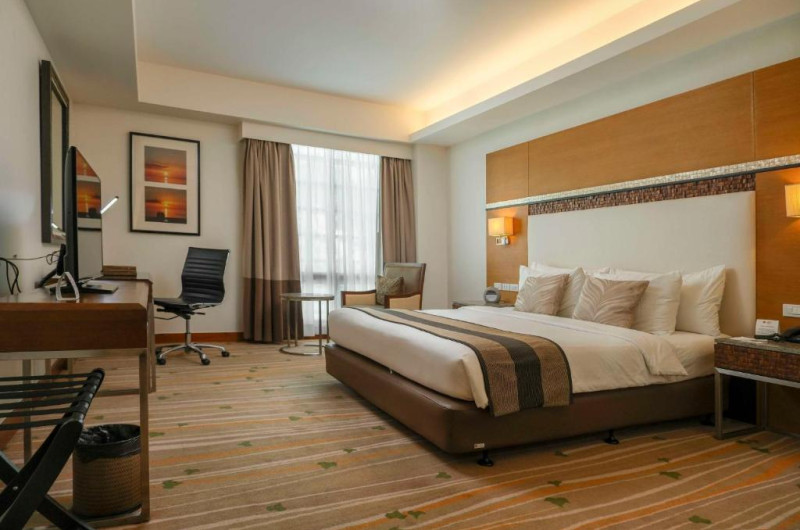 Restaurantul hotelului servește preparate din bucătăria internațională și filipineză, iar Sky Deck Lounge oferă cocktailuri rafinate și o atmosferă relaxantă. Hotelul dispune de centru de conferințe și facilități pentru evenimente.