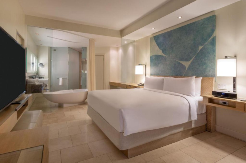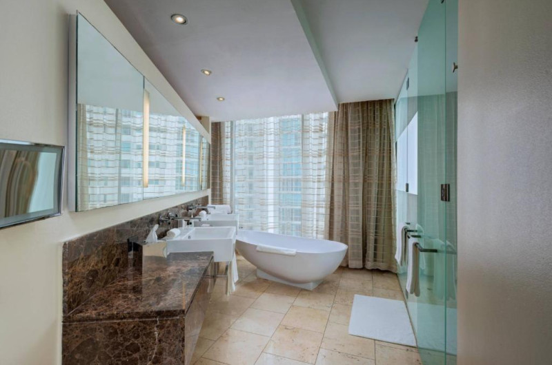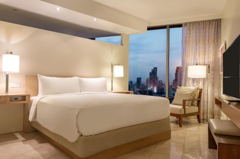 JW Marriott Panama vă oferă o evadare in inima zonei de afaceri din Panama, unde vă veți bucura de piscine infinite cu vederi maiestuoase la Golful Panama și balcoane mari unde vă puteți relaxa in timp ce vă bucurați de șederea. Fiecare cameră de la JW Marriott Panama oferă un HDTV cu ecran plat de 42 inch și un CD/DVD player. De asemenea, sunt oferite podele de marmură, blaturi de granit și o cadă adancă.