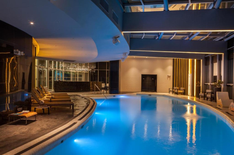 De asemenea, oaspeții au la dispoziție un centru de fitness și un restaurant. Hotelul oferă, de asemenea, săli de conferințe și magazine.