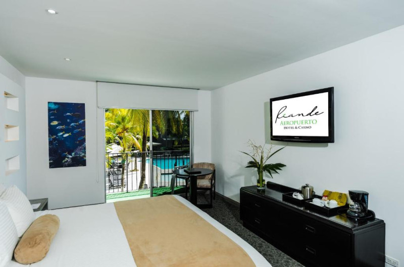 Camerele elegante de la Riande Aeropuerto Hotel Casino au TV cu ecran plat și aer condiționat. Baia privată include articole de toaletă și uscător de păr. Este disponibil room service.