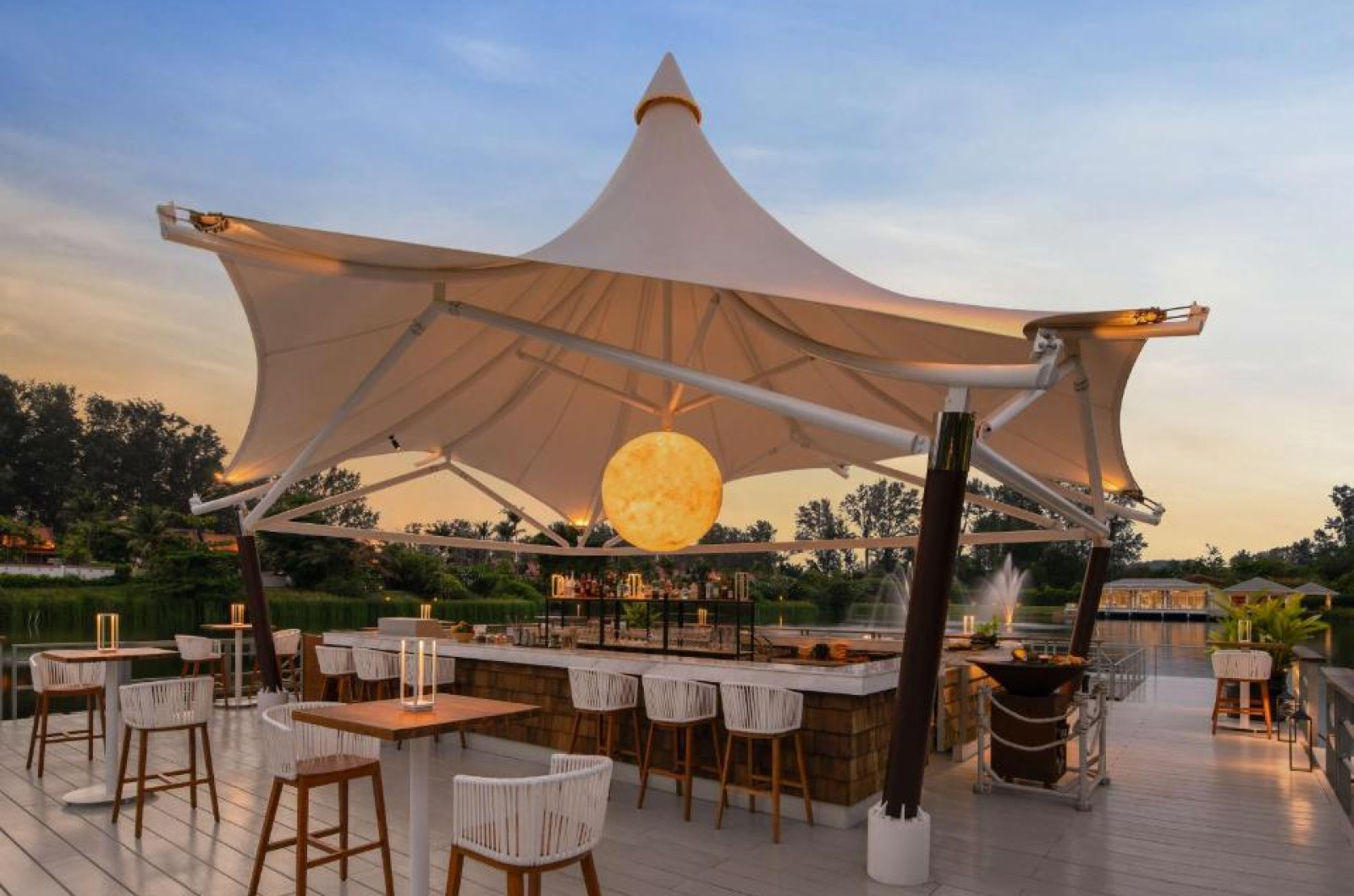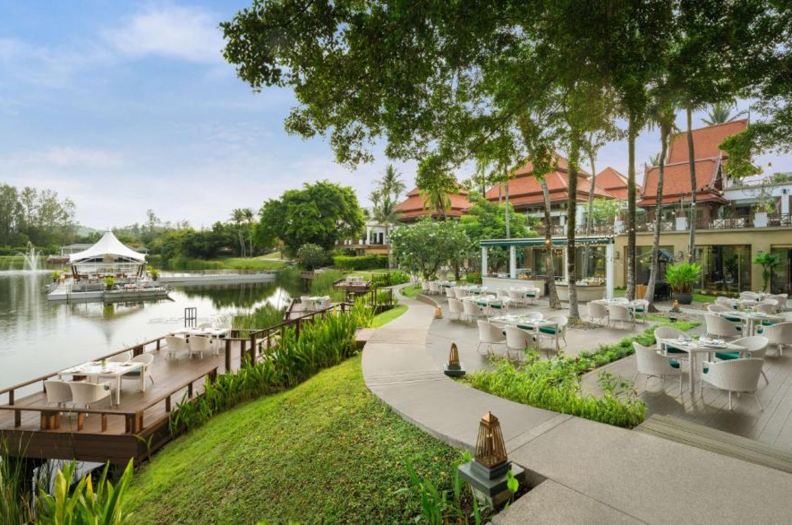 Specialităti thailandeze sunt servite in ambianta elegantă oferită de Saffron, in vreme ce Watercourt propune bufete consistente. Oaspetii au la dispozitie 2 baruri, o cafenea si beneficiază permanent de room service.