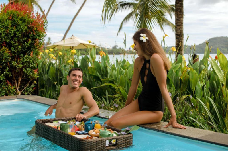 Tamarind oferă mancăruri din bucătăria thailandeză modernă și vinuri și are vedere la Marea Andaman. Aqua servește mancăruri pe tot parcursul zilei. La Edge și The Junction puteți să savurați băuturi răcoritoare și cocktail-uri.