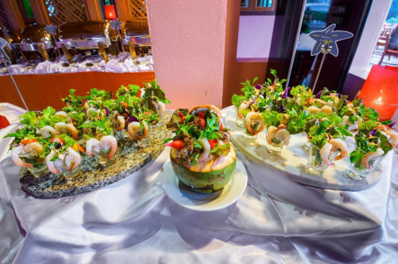 Restaurantul are vedere la mare si oferă preparate culinare asiatice si europene pe tot parcursul zilei. La piscina si barurile de la malul mării pot fi savurate băuturi răcoritoare. De asemenea, sunt disponibile lectii de gătit mancare thailandeză.