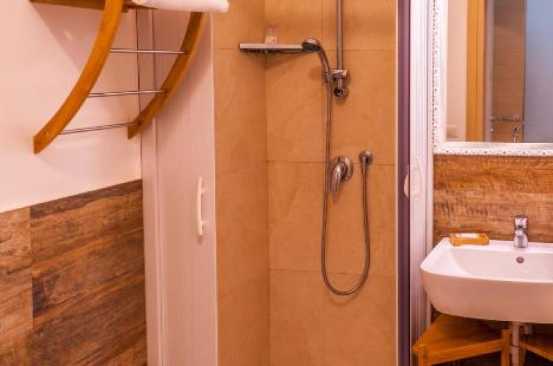 Rooms at Melo Accommodations are spacious and have parquet or Carrara marble floors. Each comes with an LCD TV.