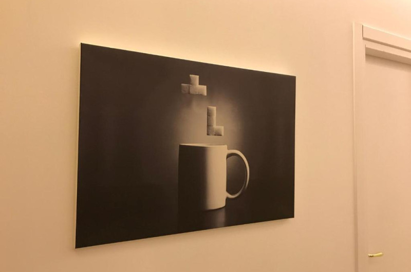 In plus, există cuptor cu microunde, frigider, fierbător de apă și aparat de cafea.