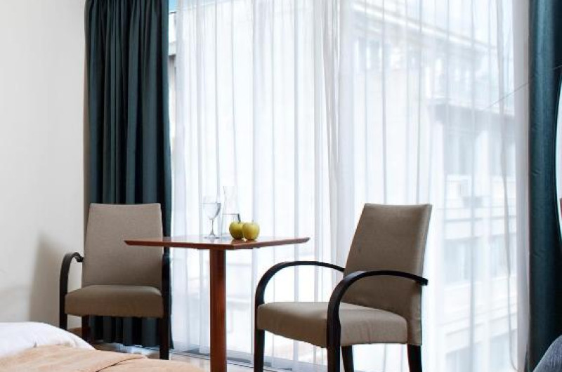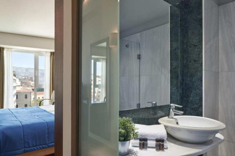 Hotelul de 3 stele oferă camere moderne, cu băi luxoase din marmură, podele din lemn, geamuri duble, ferestre izolate fonic și uși antifoc. Unele dintre camere au, de asemenea, un balcon sau ferestre mari cu vedere la Acropole.