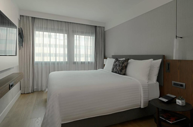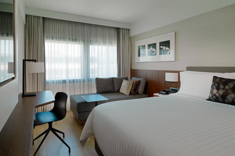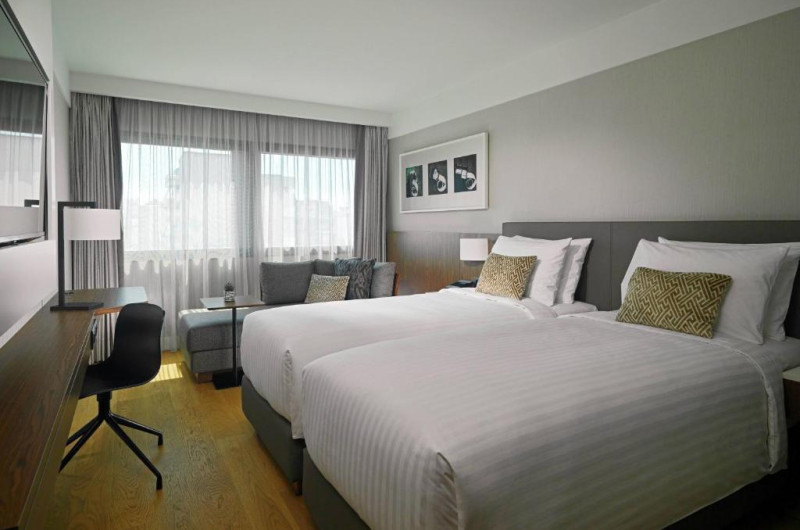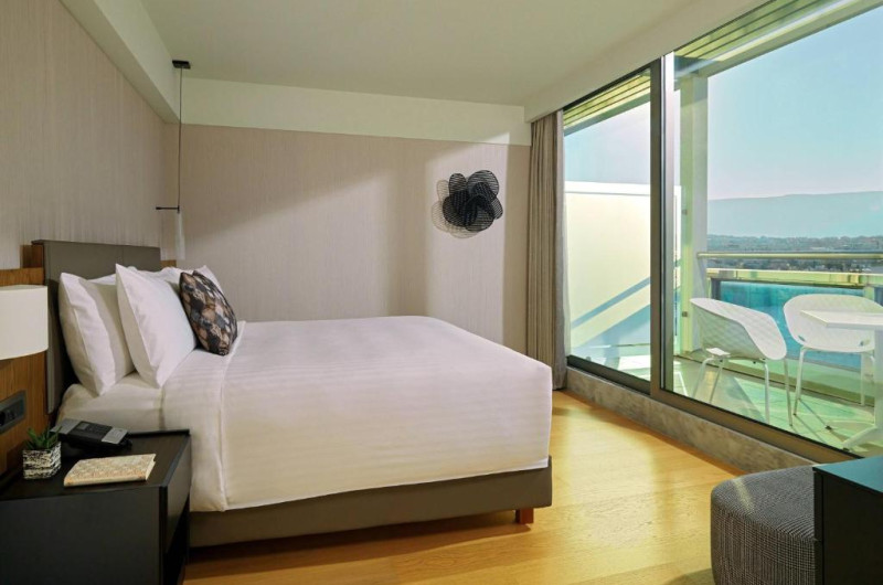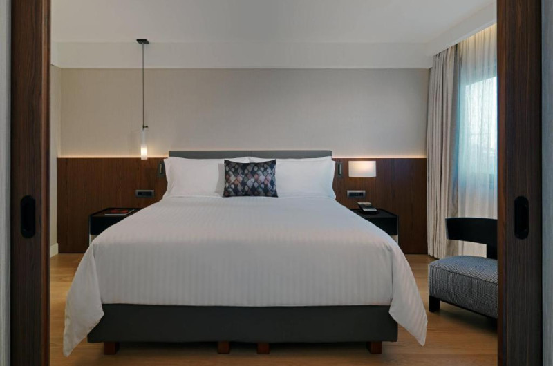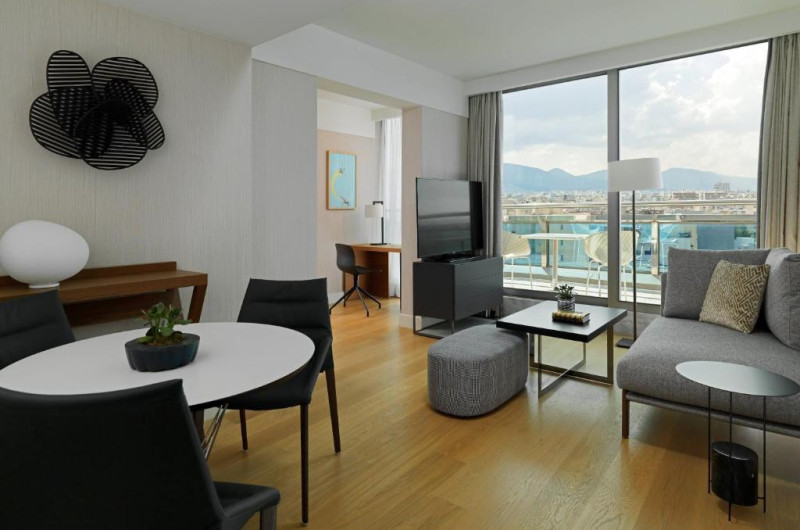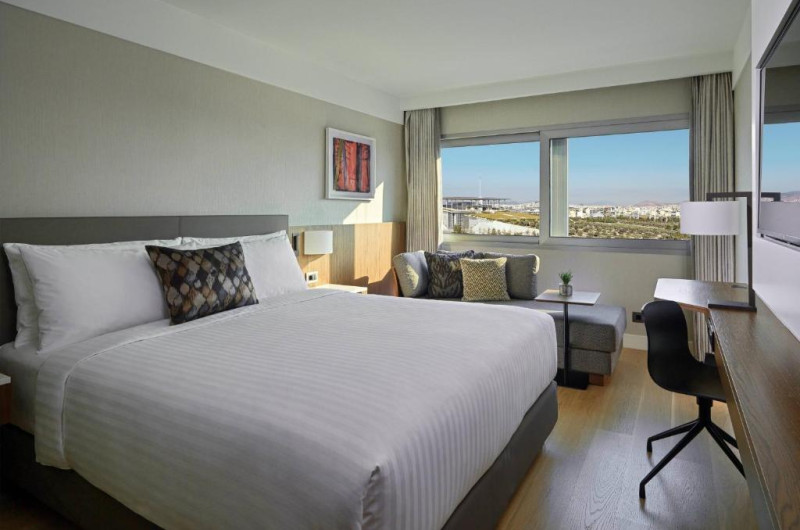 Decorate modern, in culori calde, camerele și suitele de la Athens Marriott Hotel au lucrări de artă contemporană, lenjerie de pat și perne luxoase, canapea extensibilă și articole de toaletă spa. Fiecare unitate de cazare este prevăzută cu aer condiționat, minibar și TV LED de 49 inch, montat pe perete.