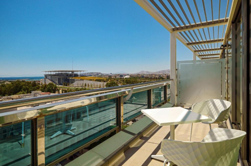 Hotelul Athens Marriott este situat pe bulevardul aglomerat Syngrou, vizavi de Centrul Cultural Fundația Stavros Niarchos și la 15 minute de mers cu mașina de Piața Syntagma. Prevăzută cu piscină și bar, terasa de pe acoperiș oferă vedere la Acropole, la mare și la Opera Națională. Oaspeții au la dispoziție un centru de fitness bine echipat.