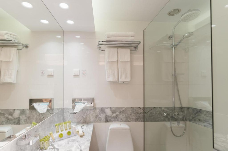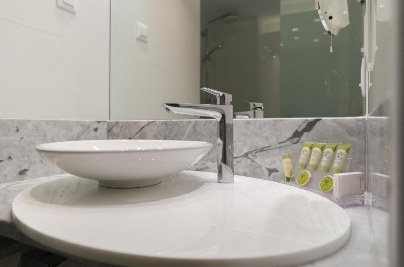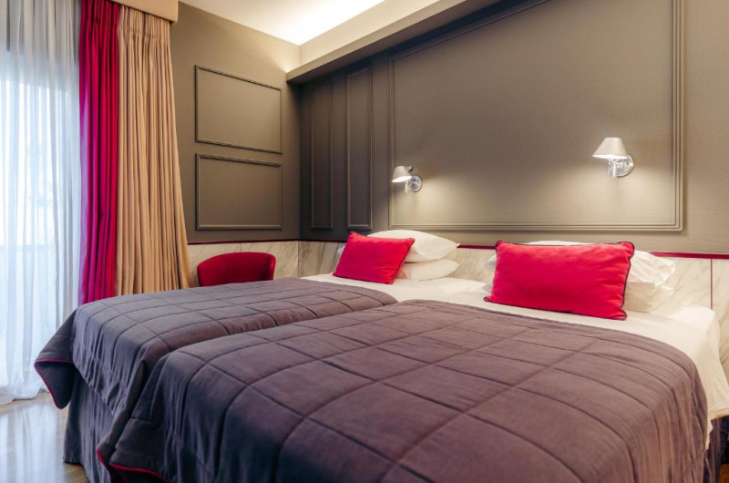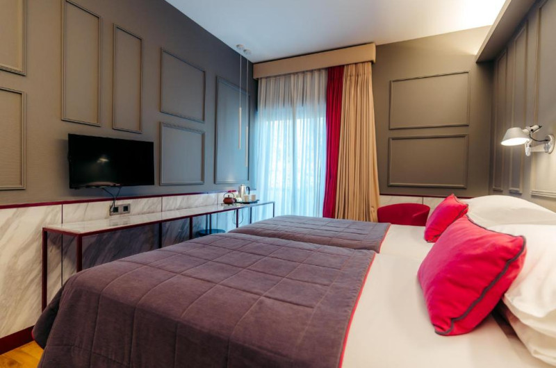 Camerele sunt moderne și au podea cu parchet și mobilier din lemn de culoare deschisă. Unitățile de cazare includ TV prin satelit, seif și ferestre izolate fonic. Majoritatea camerelor oferă balcon privat, iar unele au vedere la Acropolă.