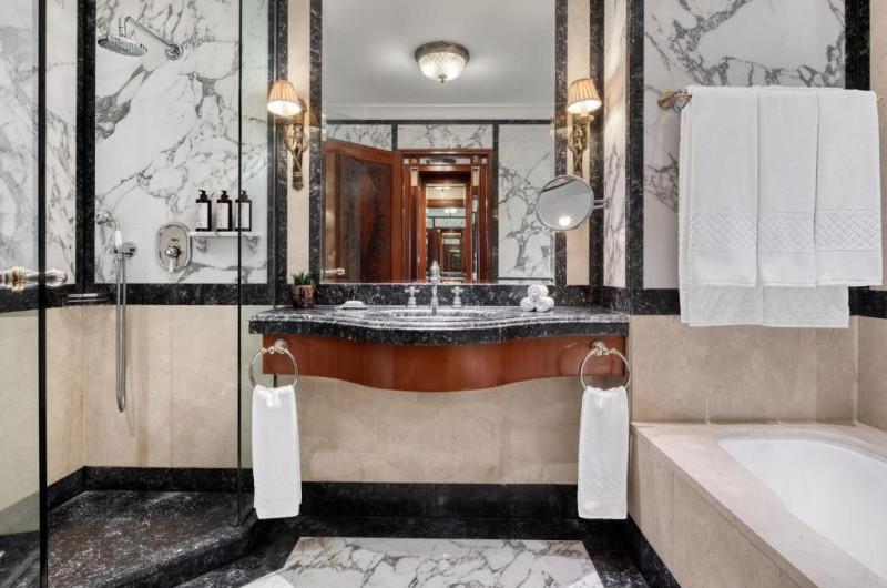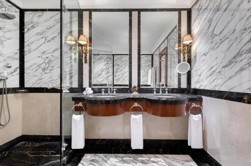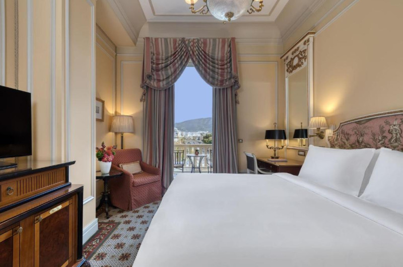 Camerele somptuoase sunt amenajate cu mobilier elegant. Băile de marmură au chiuvetă, cadă și duș separat. Unele camere au balcon cu vedere la Acropole și la clădirea Parlamentului, unde sunt loc ceremonialul zilnic de schimbare a gărzii.