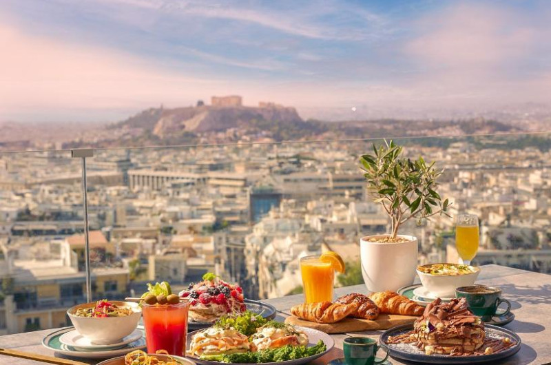 St George Lycabettus Lifestyle Hotel servește micul dejun tip bufet sau american.