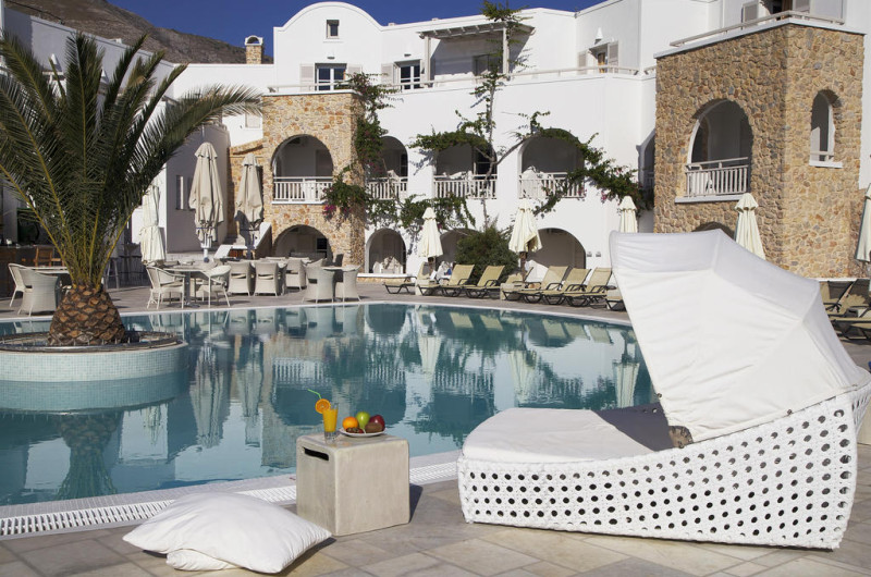 Aegean Plaza este o proprietate de 4 stele situată în Kamari (Santorini) care oferă unități de cazare cu aer condiționat, grădină și o terasă unde oaspeții pot petrece timp împreună cu prietenii sau familia. Facilitățile de la Aegean Plaza includ sală de fitness și teren de tenis. Proprietatea are, de asemenea, servicii de recepție cu program non - stop, concierge și închirieri auto. Se oferă acces gratuit la internet Wi-fi în spațiile publice. Parcarea este disponibilă la proprietate gratuit.