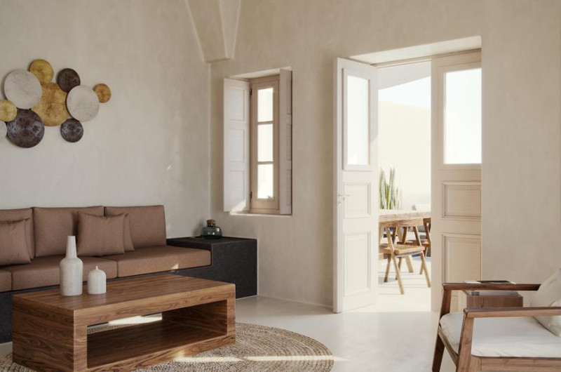 Cel mai apropiat aeroport este Aeroportul Internaţional din Santorini, situat la o distanță de 11 km. La cerere proprietatea organizează transfer la/de la aeroport contra cost.