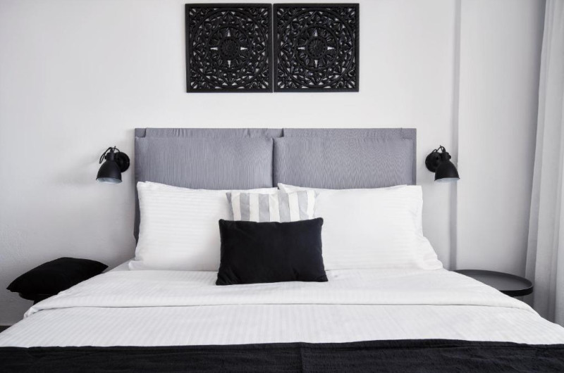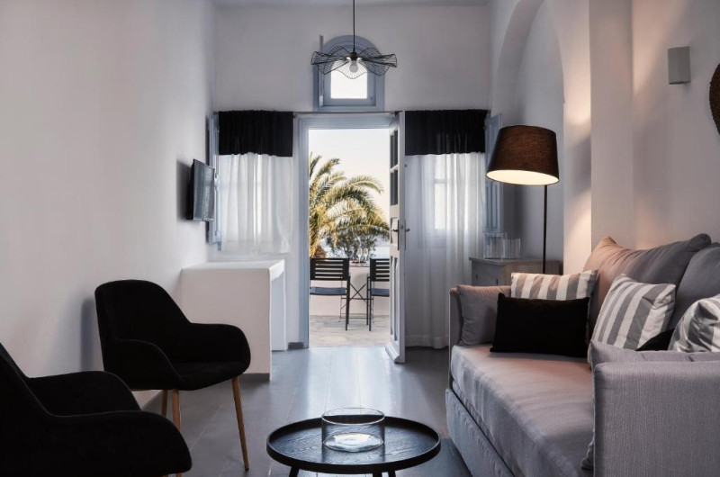 Sunt disponibile 25 camere. Unele camere au balcon, cu vedere la piscină, unde oaspeții se pot relaxa în voie. Camerele de la Mr And Mrs White Santori au în dotare aer condiționat și Tv. Fiecare cameră dispune de minibar și cană-fierbător. Oaspeții pot solicita serviciul de room service pentru a servi masa sau diverse băuturi. În camere există baie cu cadă sau duș, foehn, articole de toaletă gratuite, precum și halate de baie și papuci. Oaspeții au acces gratuit la serviciul Wi-fi în camere. Curățenia in cameră se face zilnic. Proprietatea oferă camere pentru familie cu o suprafață mai mare și un număr mai mare de paturi față de cele standard.